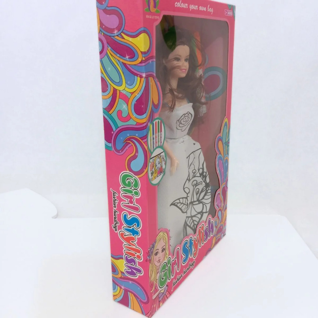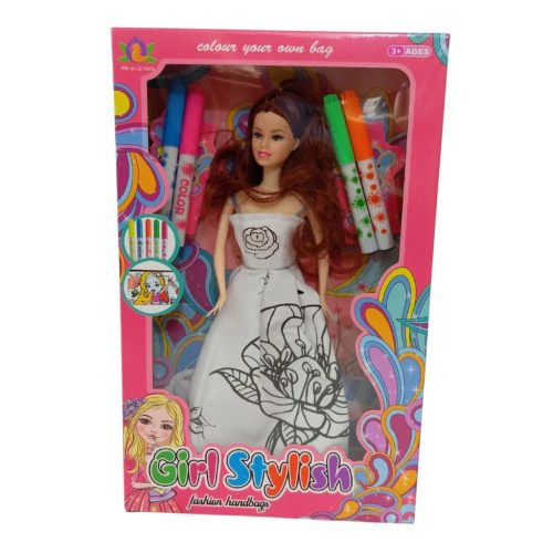 ÚJ, bontatlan csomagolású Girl Stylish divatbaba szett, amelyben a gyerekek maguk tervezhetik meg a baba ruháját. A készlet egy kb. 28 cm magas bababól és több színes filctollból áll, így azonnal indulhat a mesés divattervezés. Szuper ajándék 3 éves kor feletti gyerekeknek, akik imádnak rajzolni, színezni és szerepjátékot játszani.