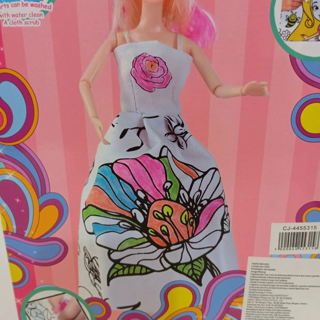 • Kiszerelés: színezhető ruhás divatbaba + több színes filctoll (kreatív készlet).